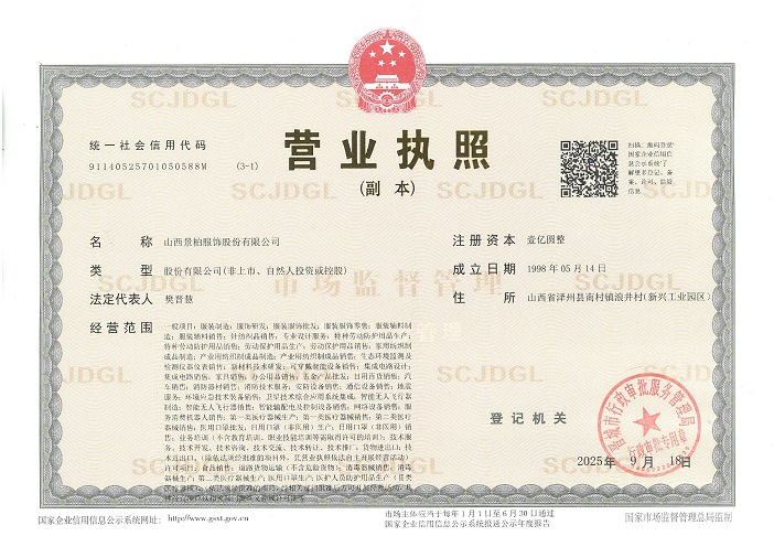 Copyright@2014 山西景柏服飾股份有限公司 備案號:晉公網安備14050002001831 地址:山西省晉城市澤州縣